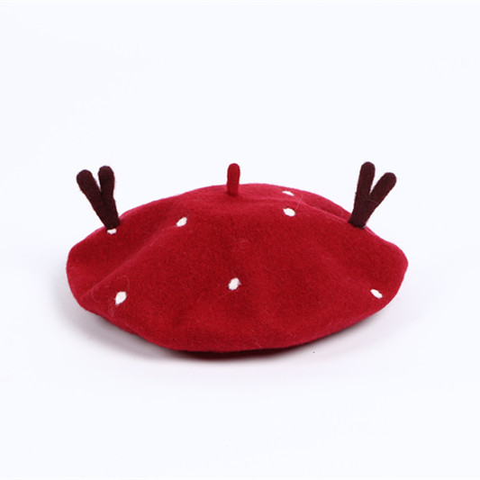 亲子款原创设计圣诞节羊毛贝雷帽麋鹿复古造型蘑菇帽 森系手工帽热门设计联盟服务商