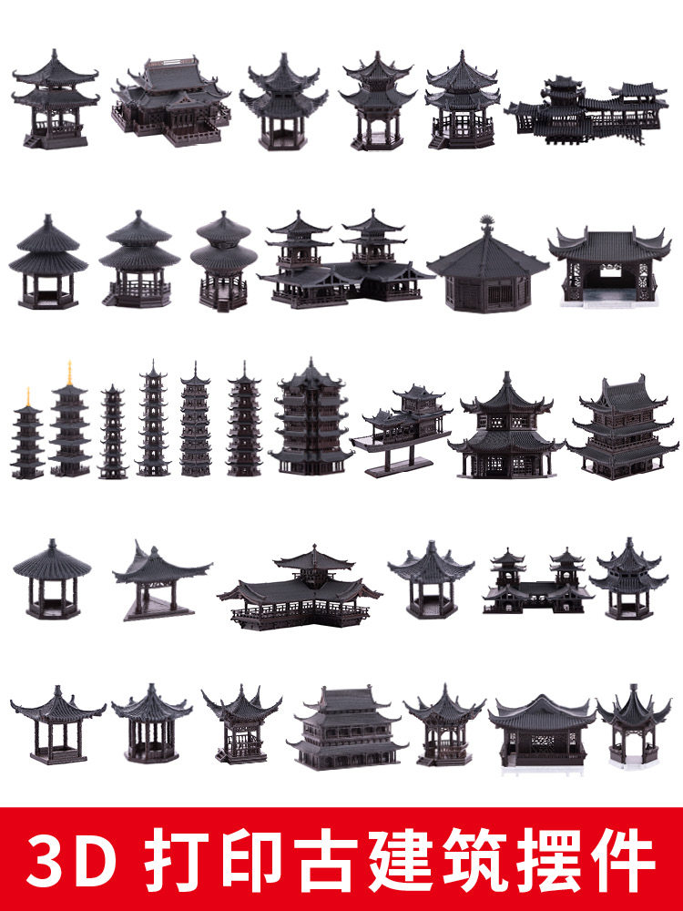 3D打印假山凉亭传统古典建筑模型吸水石上水石微景观奇石小摆件热门设计联盟服务商
