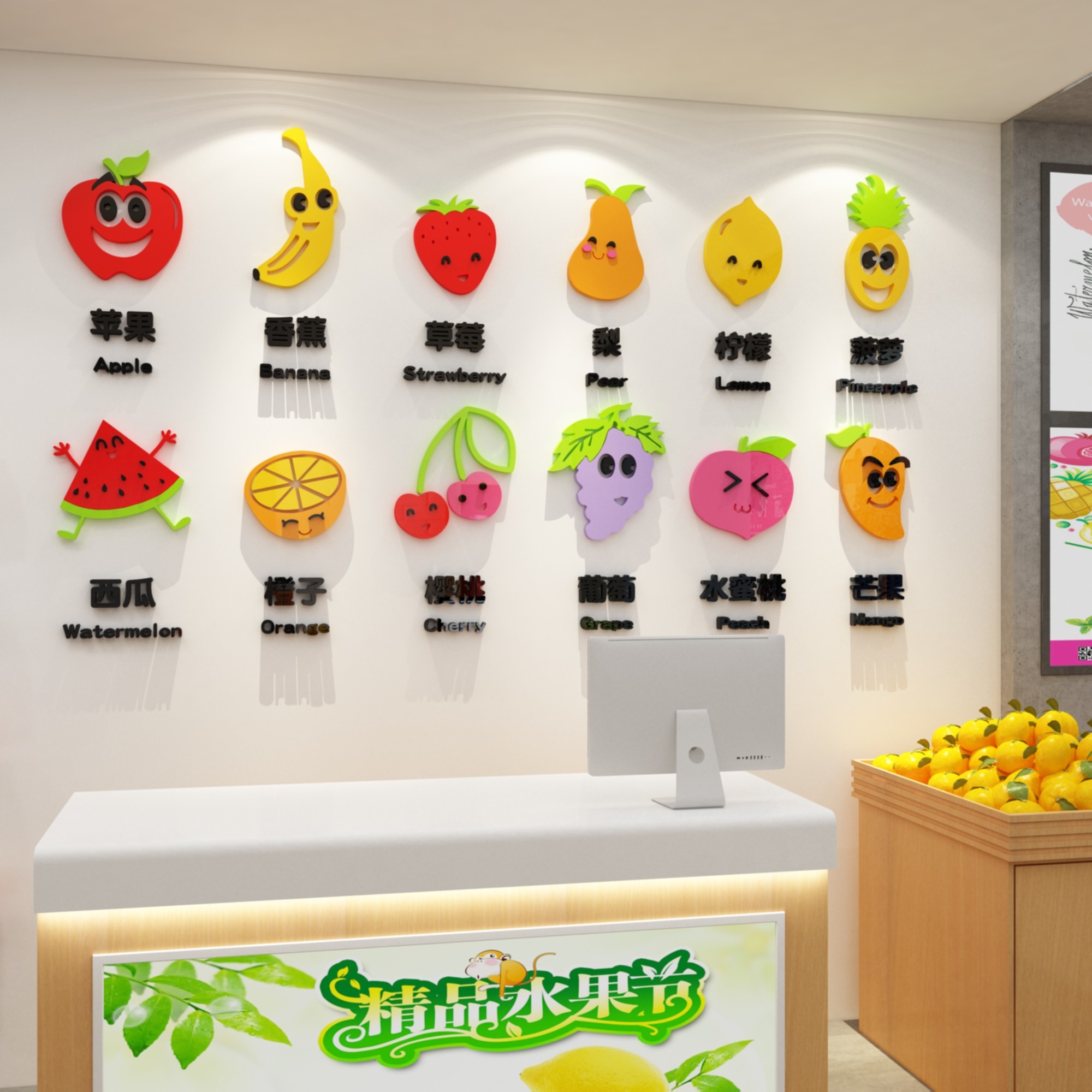 卡通水果店装饰用品广告墙贴纸生鲜店铺装修布置超市果蔬海报壁。热门设计联盟服务商