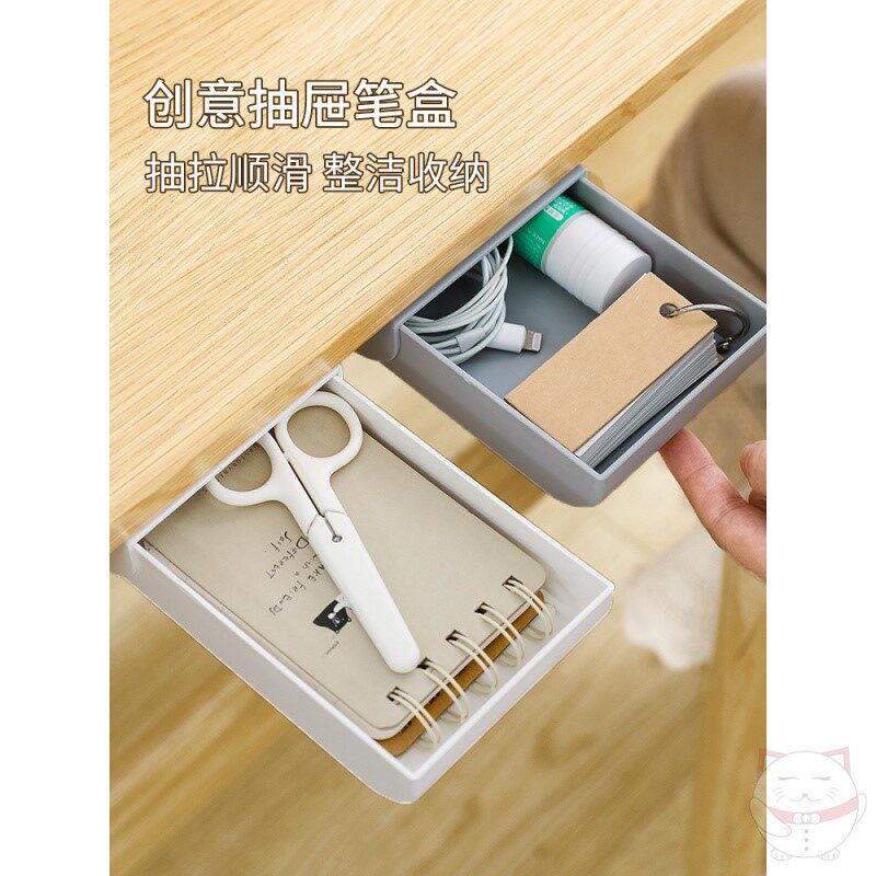 收纳抽屉式收纳盒办公室神器桌下工具收纳架隐形免打孔粘贴式悬挂热门设计联盟服务商