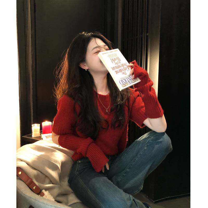 甩饼大嫂 红色小众针织衫女内搭冬新年氛围感设计感分袖毛衣外穿热门设计联盟服务商