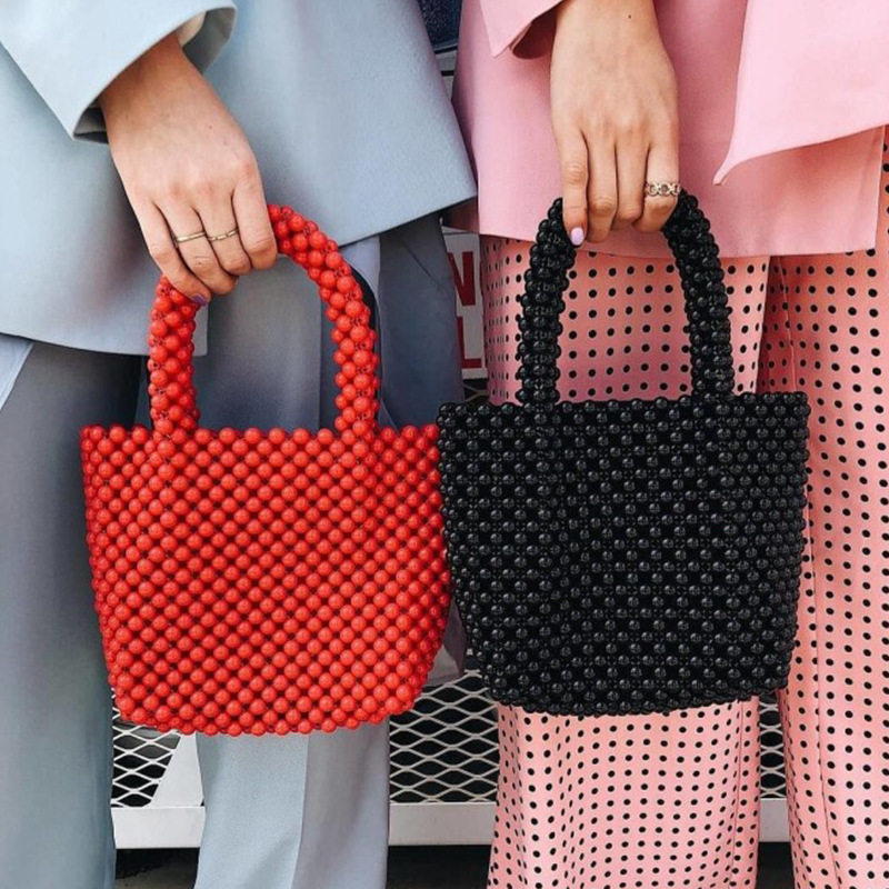 2019 ins超火纯手工编织 串珠手提单肩复古黑红小众设计手拎包热门设计联盟服务商