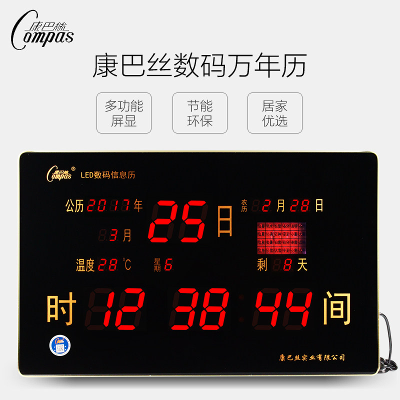 康巴丝LED数码万年历电子客厅静音挂钟电子表创意日历夜光薄挂表热门设计联盟服务商