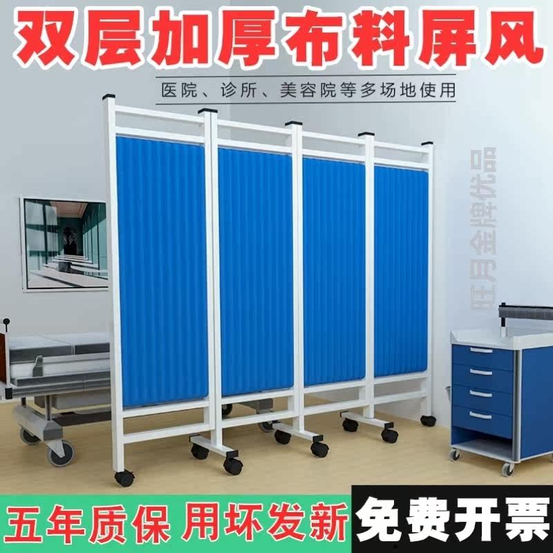 屏风墙医用养生布艺医疗隔断帘可折叠移动美容会所推拉折屏带滑轮热门设计联盟服务商