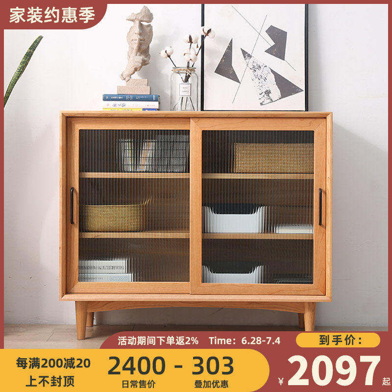 北欧樱桃木两门书柜日式实木简约收纳柜玻璃门大空间储物柜展示柜热门设计联盟服务商