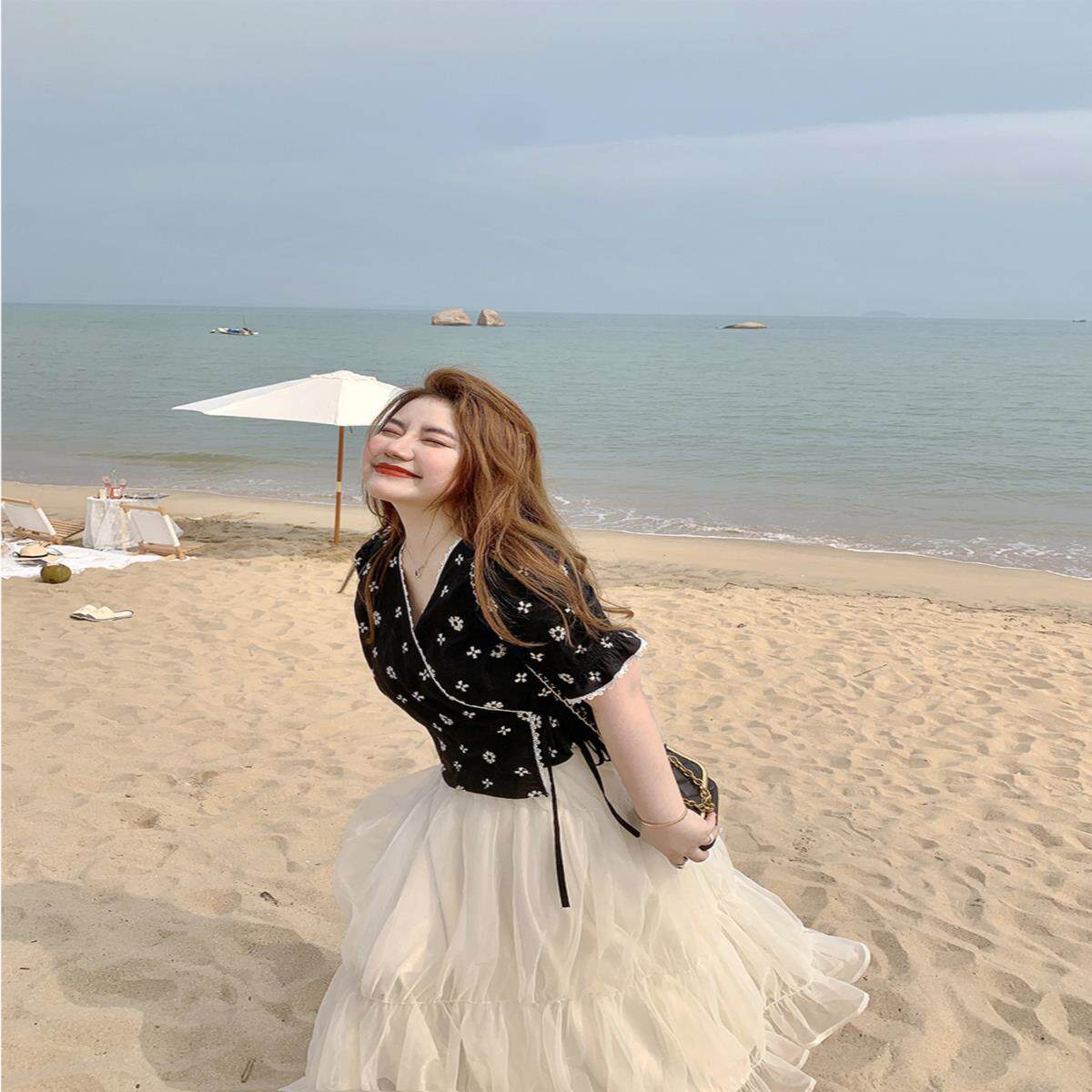 璐可爱/洛林小姐 微胖mm复古小众v领泡泡袖上衣/绑带设计感连衣裙热门设计联盟服务商
